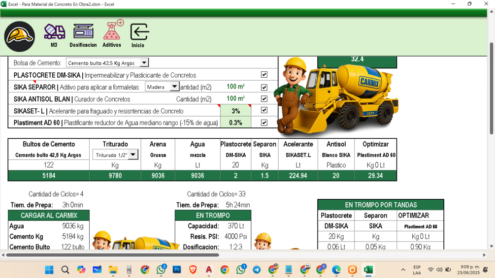 Excel para Cantidades de Concreto 2.0 [ Arena | Cemento | Grava | Aditivos ] | New Version