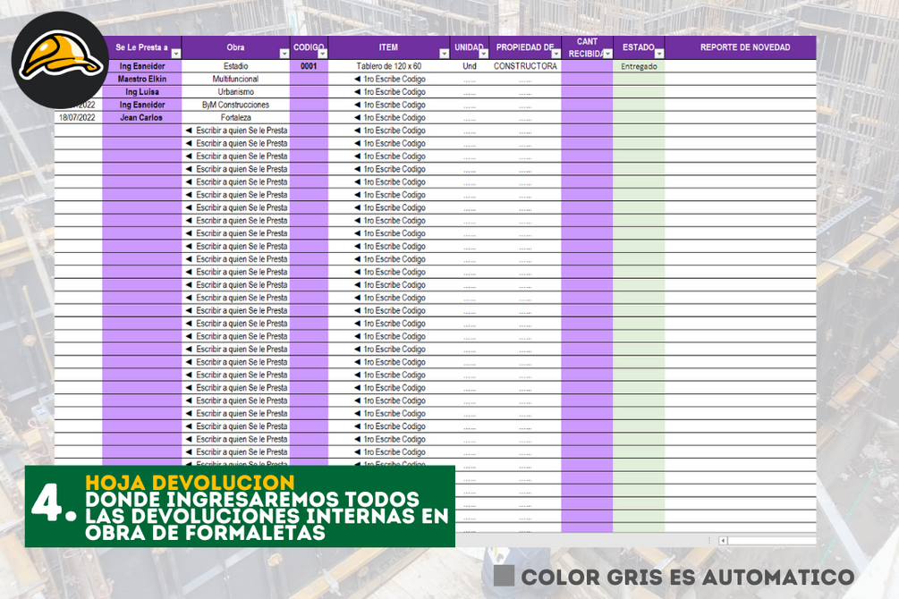 Plantilla de Excel profesional diseñada específicamente para llevar el control total del uso de formaletas en obra. Ideal para arquitectos, ingenieros civiles, residentes de obra, contratistas y encargados de bodega.