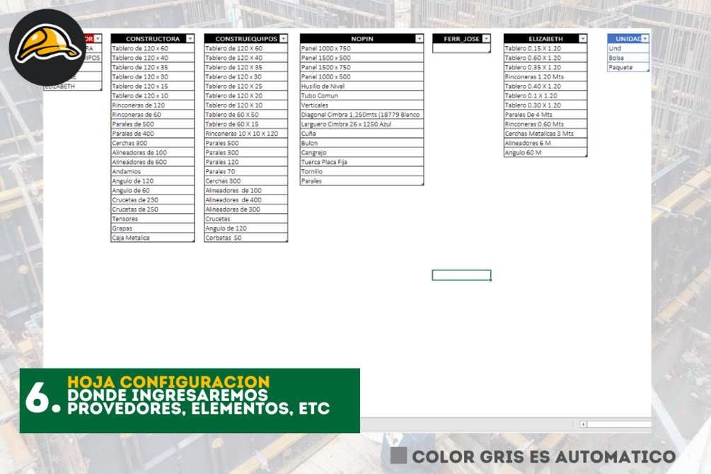 Plantilla de Excel profesional diseñada específicamente para llevar el control total del uso de formaletas en obra. Ideal para arquitectos, ingenieros civiles, residentes de obra, contratistas y encargados de bodega.